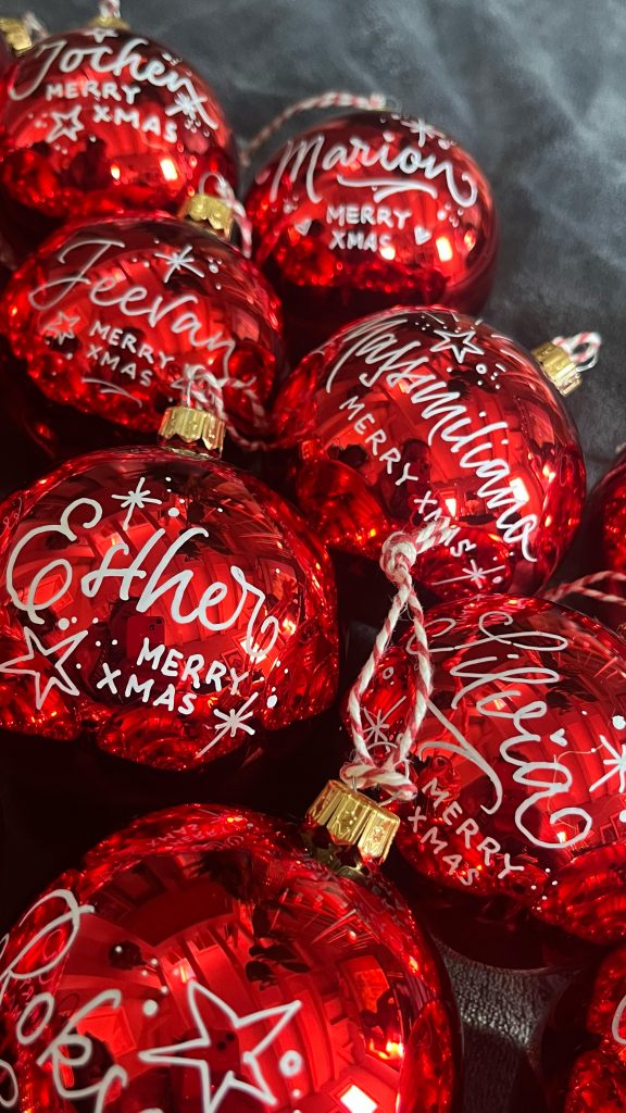 Ich biete auch dekorative Beschriftungen, Adressservice oder individualisiere mit schöner Schrift Produkte oder Karten live bei dir vor Ort.